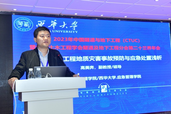 高美奔副教授做了题为“隧道与地下工程地质灾害事故预防与应急处置浅析”的分论坛报告,为响应国家需求,完善隧道地质灾害应急管理体系,报告中介绍了现有隧道常见地质灾害事故,分析不同地质灾害的事故特点,总结了地下工程地质灾害应急处置方案,提出新技术和新方法对相关灾害进行预测和处置。