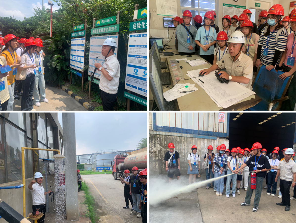 6月19日上午,同学们参观了四川能投新都分布式能源有限公司,公司安全部门负责人介绍了分布式能源发电的运行原理和核心技术,带领同学们参观了集控室、配气站、天然气增压站、燃气锅炉、燃气轮机、综合管架等设施设备,从安全生产的角度讲解了危险源管理、安全隐患排查、天然气泄漏的监测预警与应急处置等事项。下午,四川川化青上化工有限公司安全环保部负责人向同学们介绍了硫酸钾生产流程,结合实际案例讲解了危险化学品安全管理注意事项与作业提醒,其中重点介绍了企业三种危险源:浓硫酸、盐酸和氯化氢的安全管理和应急处置措施。两个企业将应急预案、安全隐患排查治理档案等文件公开分享,为同学们展示企业应急管理系统如何有序而有效运行。