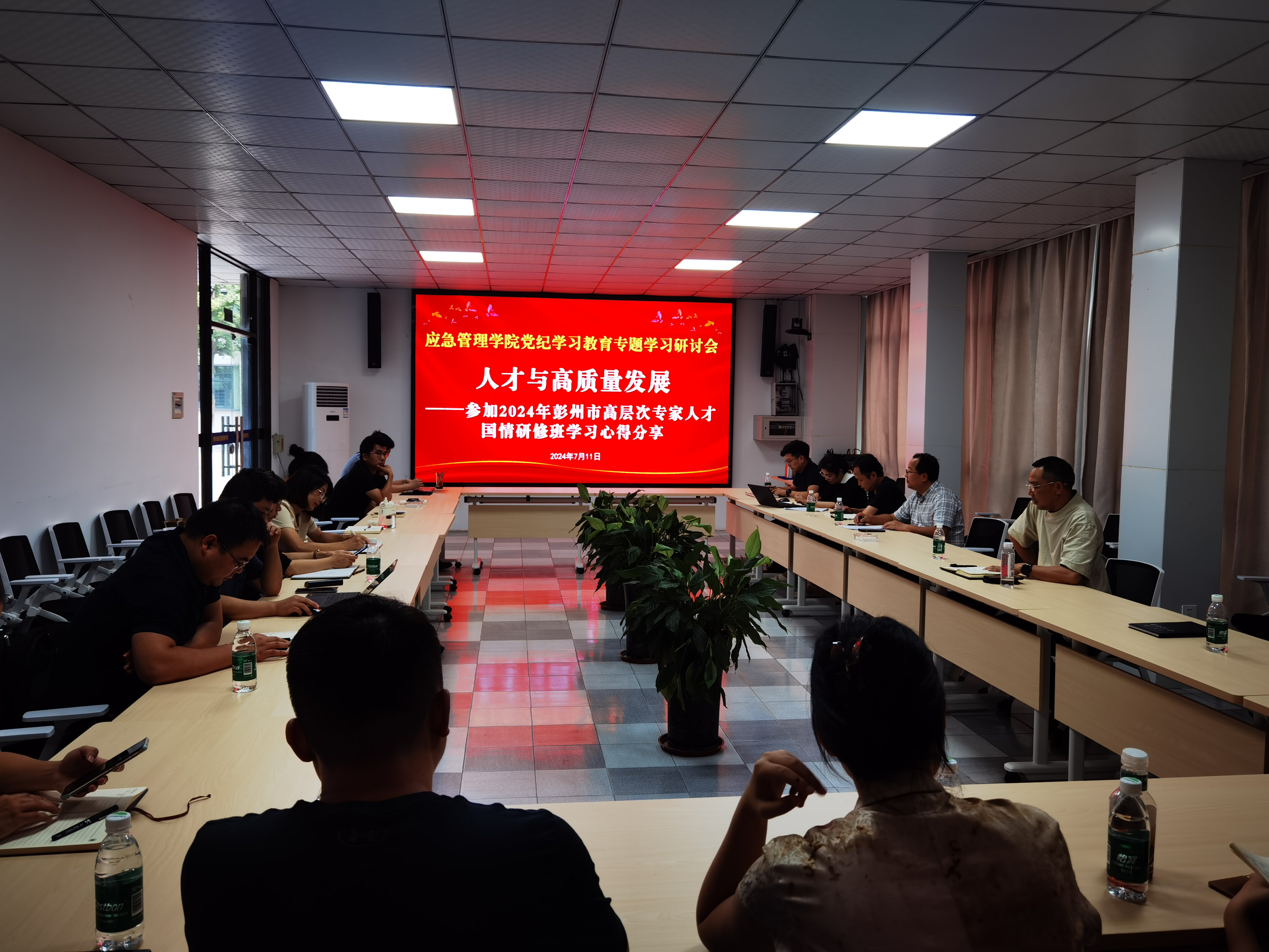 接着,应急技术与管理系教师党支部书记、应急技术与管理系主任张毅博以“人才与高质量发展”为题分享了他参加2024年彭州市高层次专家人才国情研修班学习心得,他回顾了自己在新加坡国立大学苏州研究院培训主要内容,包括深入学习习近平总书记对人才工作重要指示精神、新质生产力特征与中国新兴产业发展趋势等,引导高层次专家人才和人才工作者准确把握国情省情市情县情等,他号召全院教师珍惜人民教师荣誉,潜心教书育人,聚焦应急管理教育事业,提升理论素养,提升党性修养,激发爱国热情,增进服务地方经济社会发展的责任感和使命感。