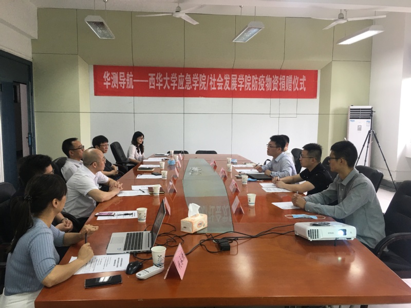 2020年6月1日上午,上海华测导航技术股份有限公司、应急学院/社会发展学院防疫物资捐赠仪式在学院会议室举行。上海华测导航技术股份有限公司四川分公司总经理一行4人来校交流,应急学院/社会发展学院领导班子舒志乐、郭忠林、冯永泰及各部门负责人参加会议,会议由郭忠林主持。