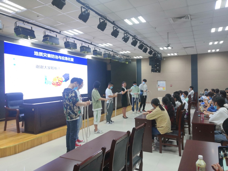 在应急科普的讲座中,讲师分别给同学们介绍了不同的地质灾害类型、灾害防治和应急处置,特别强调了生活中常见的火灾、泥石流、地震等灾害的应急处理。