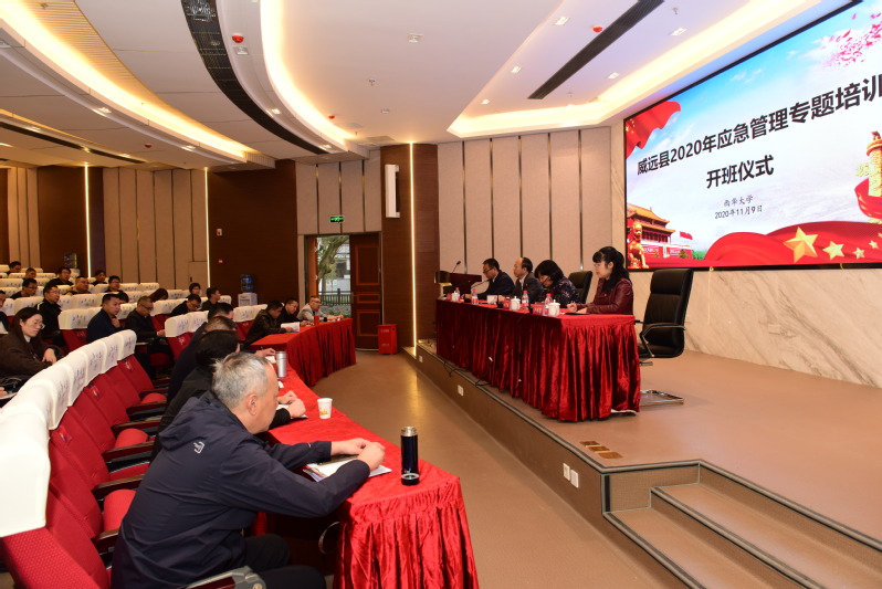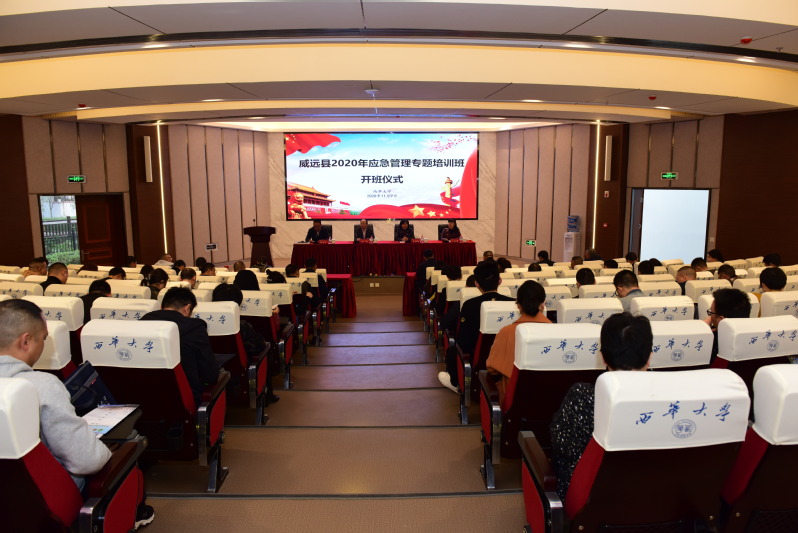 为深入学习贯彻习近平新时代中国特色社会主义思想和习近平总书记对四川工作系列重要指示精神,全面贯彻落实党的十九届五中全会精神和省委省政府、应急管理部关于应急管理工作的各项决策部署,全面深入推进全省应急管理系统“大学习、大培训、大练兵”工作,受威远县应急管理局委托,威远县2020年应急管理专题培训班在我校举办。11月9日,开班仪式在学术交流报告厅举行。威远县人大常委会党组成员、副主任金毅,威远县纪委监委驻县委办公室纪检监察组长卢礼慧,学校党委书记边慧敏,应急学院副院长舒志乐出席开班仪式,仪式由舒志乐主持。