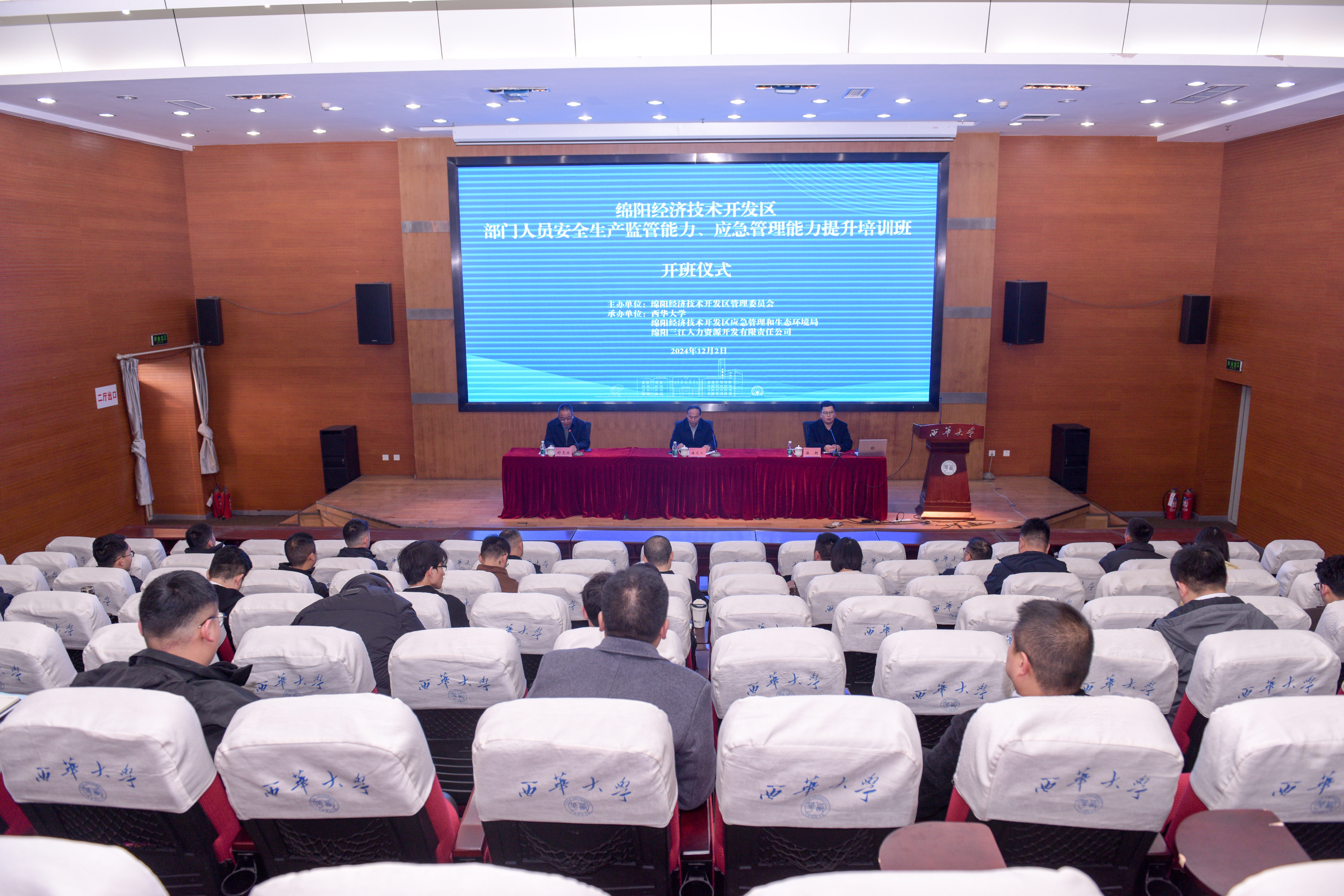 12月2日,绵阳经济技术开发区2024年部门人员安全生产监管能力、应急管理能力提升培训班开班仪式在图书馆报告厅二厅举行。绵阳经开区党工委委员、管委会副主任,潘文七;西华大学伟德国际1946源于英国院长,舒志乐出席开班仪式。