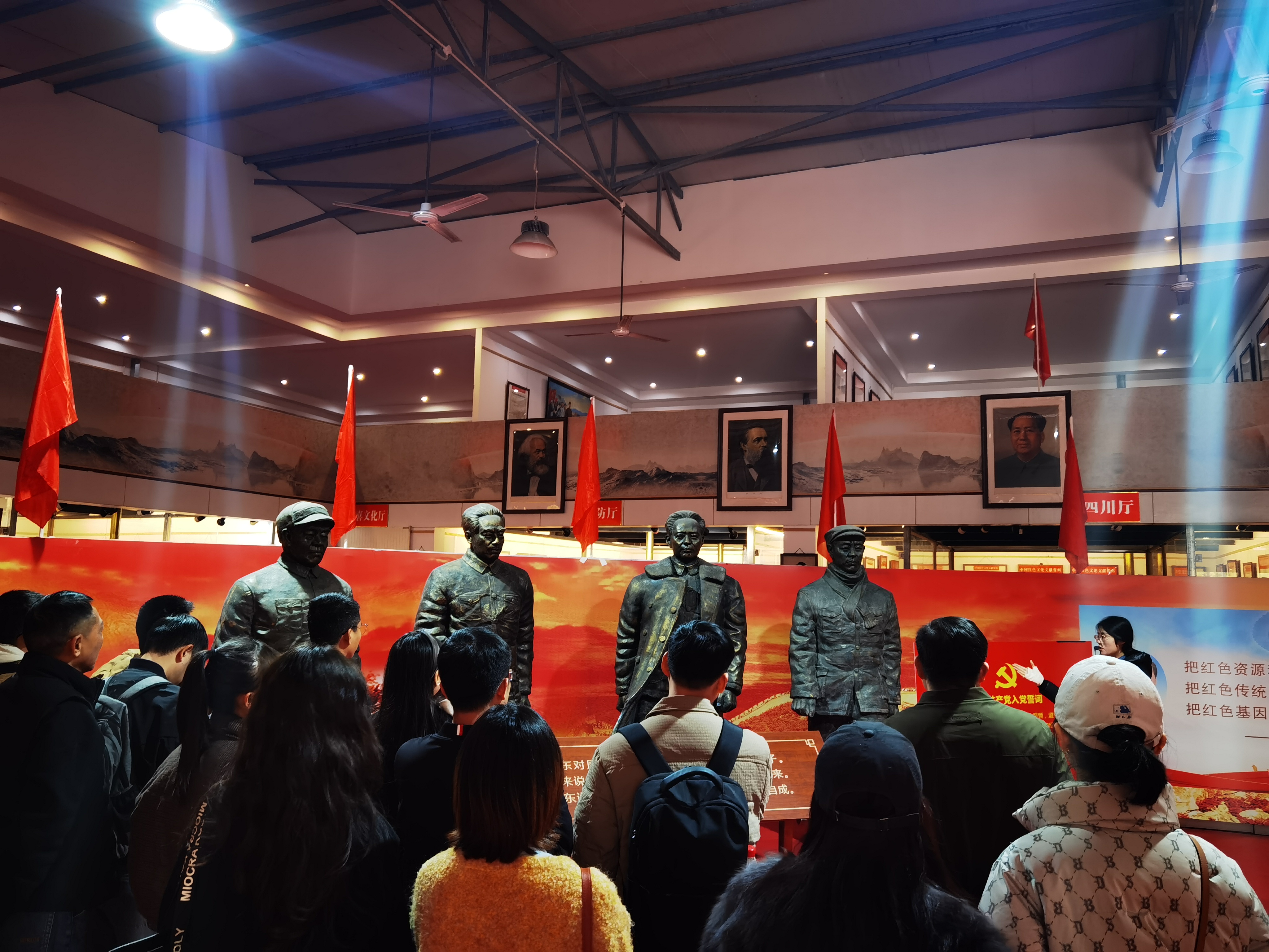 在讲解员的带领下,教师们先后参观了主题馆“红色文化博物馆”“抗美援朝博物馆”“农耕文化藏品馆”等,馆内设有红军长征纪念厅、焦裕禄和雷锋厅、国防厅、抗美援朝厅等,也有反应当地特色的四川厅、郫县厅、非物质文化厅等。。在“国防”展区,每一件旧物都见证着国家科技发展的历程,展柜中的一幅幅照片,不仅展现了革命前辈们不屈不挠的精神风貌,也时刻提醒着队员们珍惜当下的幸福生活,不断奋斗,秉持坚持不懈的精神,为国家和人民的未来贡献自己的力量。在“英雄人物”展区,实践队成员聆听了杨连弟、邱少云等革命英烈的事迹,无不为之动容。这些英雄的事迹激励着每一位成员,让他们更加坚定了为祖国的繁荣富强而努力奋斗的决心。
