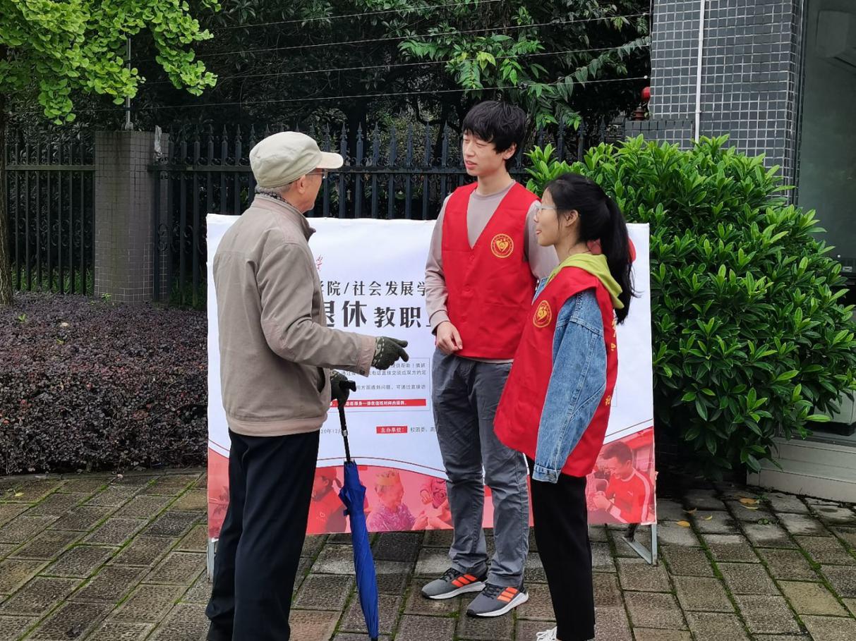 为协助学校做好关爱离退休教师服务工作,丰富离退休教师的精神文化生活,提高晚年生活质量,营造尊老爱老的浓厚氛围,弘扬志愿服务精神,同时,发挥离退休老教师的余热,帮扶青年大学生成长成才,实现“老有所乐,少有所进”,2020年10月20日,应急学院/社会发展学院青年志愿者服务队在西华苑物业开展今年的“青春伴夕阳”活动启动仪式。
