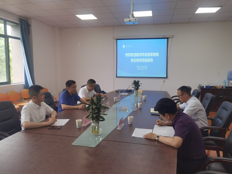 5月11日,射洪市应急管理局局长李青,信息中心副主任龙涛,办公室主任任林到应急学院调研交流,双方就拟于近期举行射洪市应急管理干部综合业务培训班相关事宜进行商谈,对培训的课程安排、师资配备、后勤保障等工作交流了意见。