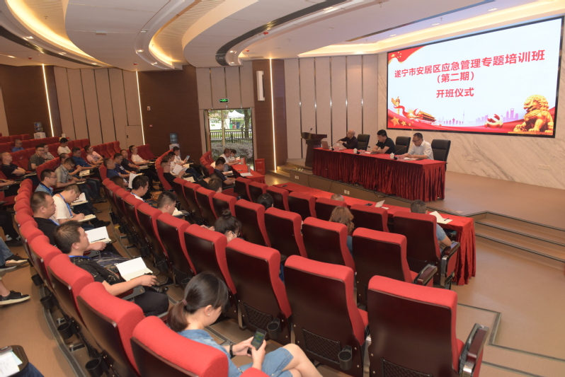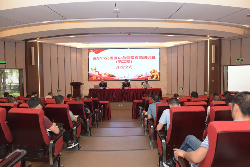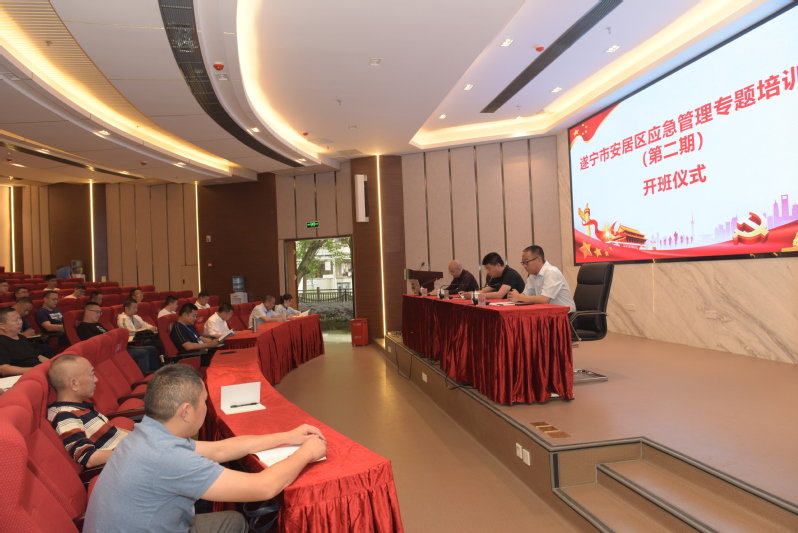 5月12日上午9:00,培训班开班仪式在学术交流中心报告厅举行。安居区应急管理局副局长王兵、应急学院副院长舒志乐、应急学院党委副书记兼副院长郭忠林出席开班仪式,仪式由郭忠林主持。