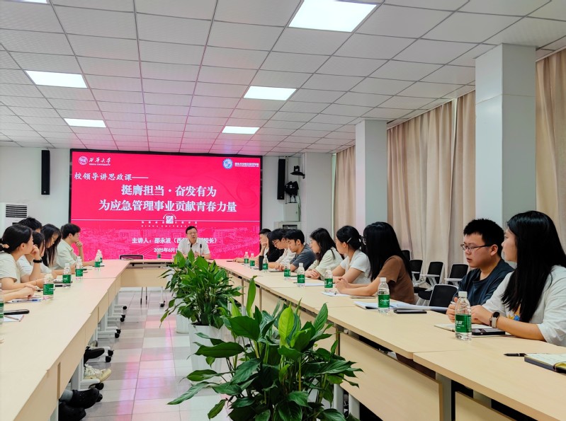 6月19日,副校长邵永波以“挺膺担当·奋发有为,为应急管理事业贡献青春力量”为主题在彭州校区为应急管理学子讲授思政课。