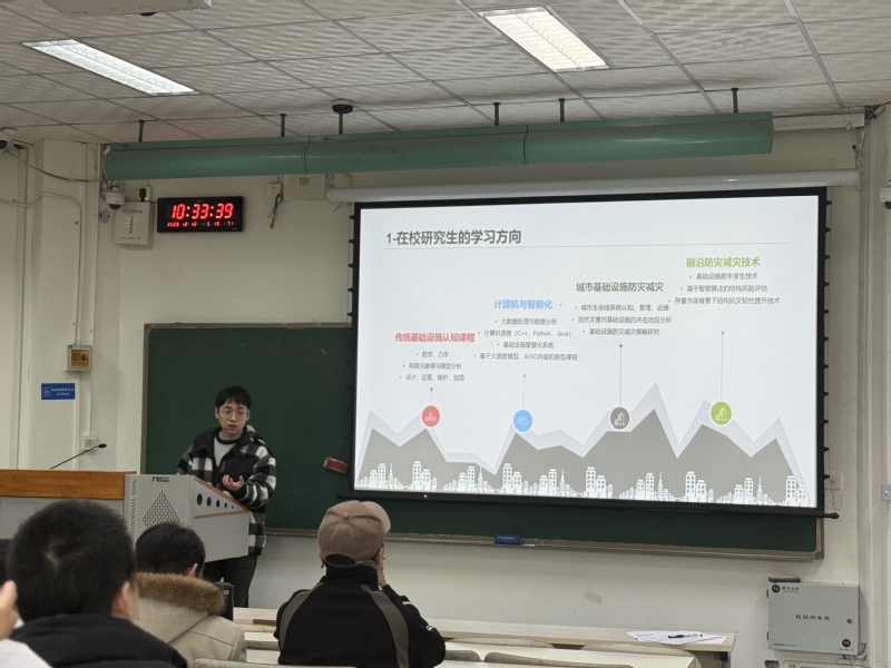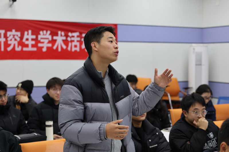 智慧教室举行。本次论坛邀请获得2025年国家奖学金和学业奖学金的研究生对自己的研究方向及论文撰写情况进行汇报,学院李宇杰老师、何佳骏老师和黄晓昇老师三位青年学者与研究生面对面交流点评。
