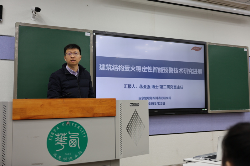 随后,应急管理部四川消防研究所第二研究室主任蒋亚强以《建筑结构受火稳定性预警技术研究进展》为题,从消防救援实战角度出发,阐述火灾中建筑结构稳定性预警的背景需求、研究目标与技术路线,介绍已开展的相关研究工作与已取得的阶段性进展,重点分析典型钢结构在极端火灾中的行为相应规律,展示研究提出的预警技术方法与装备。