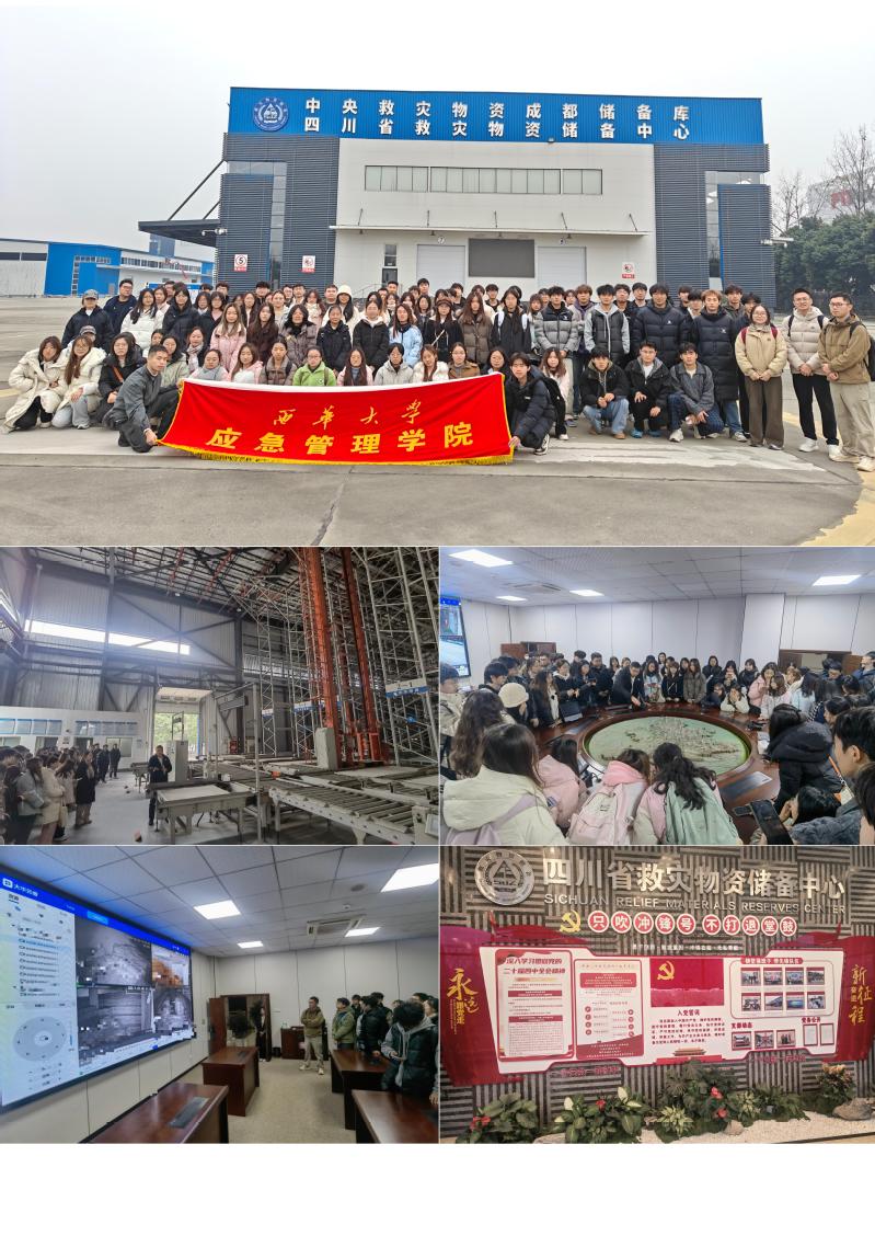 在中央救灾物资成都储备库(四川省救援物资储备中心),同学们走进救灾物资储备库开展认识实习,近距离探秘救灾物资的存储、管理与调运全流程,深切感受应急物资保障体系的智慧化建设成果。在基地老师带领下,同学们参观了储备库的A库、B库等区域,了解到库内存储棉被、折叠床、棉帐篷等200多万件生活类救灾物资,品类达十多种,近年还新增了板房、家庭应急包等物资。并重点观摩了全国领先的帐篷高位存储模式,通过专用托盘、高位货架与德国林德叉车的高效配合,大幅提升存储效率与空间利用率。在智慧化管理方面,同学们见识了手机操控的智能照明系统、货架二维码溯源、温湿度实时监测等设备,了解到储备库通过三套数字化系统实现物资精准管理、车辆自动调度与任务进度可视化。同时,通过视频监控系统,大家看到全省660多个市县前置库点的分布情况,特别是三州等灾害高发地区的物资保障布局,以及“就近调用、先进先出”的调运原则。此外,同学们还学习了救灾物资采购流程、存储规范、应急调运预案等专业知识。此次实习让同学们将应急管理理论与实践深度结合,直观感受了智慧化、规范化在应急保障中的重要作用,为未来职业发展积累了宝贵经验。