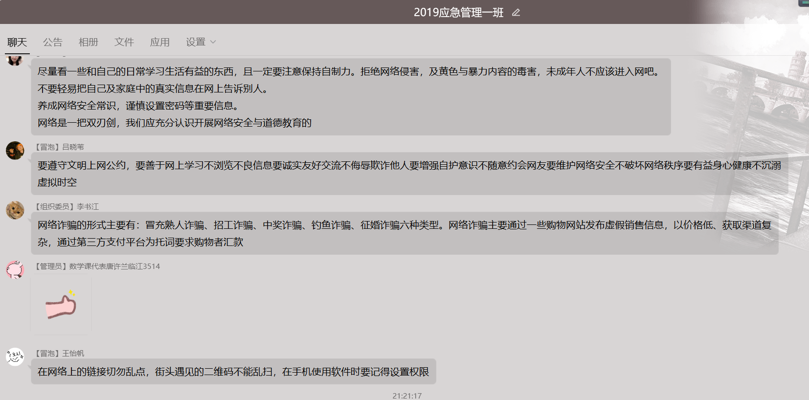 为增强同学们的网络安全意识,积极参加2021年国家网络安全宣传周校园日活动,伟德国际1946源于英国2019级公共事业管理1班于1010日召开了线上网络安全主题班会。