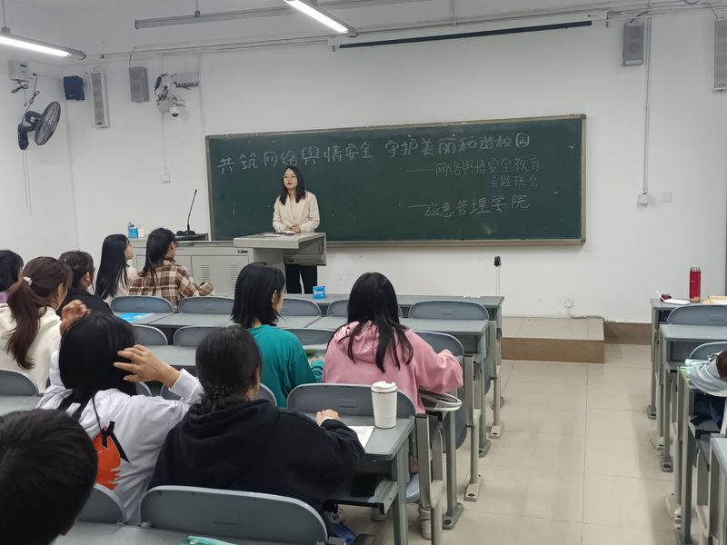 此次班会由李明玉老师主持,李明玉老师用具体的实例清晰阐述了网络的“利”与“弊”,网络这把双刃剑在给人们的生活带来便利的同时,也需要进行规制,确保其良性发展,更好地引导青年人树立正确的三观,其中最为重要的就是同学们要树立正确使用网络的理念。随后吴文懿班长给同学们详细介绍了木马的传播方式、危害以及防范措施,网络交友的正确方式等等。最后吴文懿班长对同学们在网上冲浪时发表的言论和行为进行了规范,向大家说明了校园网络舆情安全方面的具体要求。