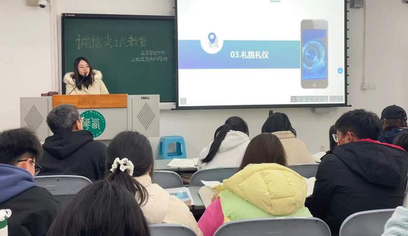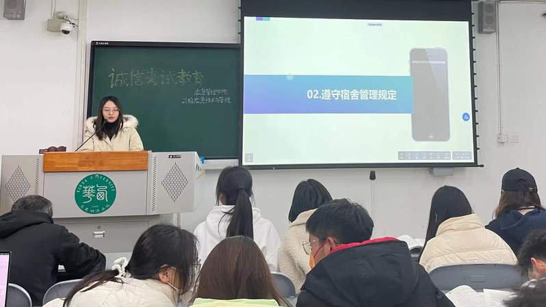 随后,李明玉老师对西华大学学生手册上诚信考试、遵守宿舍管理规定、礼貌礼仪有关内容进行了着重讲解。李明玉老师还提到西华大学对于考试违纪考试作弊如何处理、宿舍养宠物这些问题的说明以及强调,还有师生之间如何正确的以朋友相待。让同学们清楚了解学校有关考试的要求,端正考试态度,提高同学们对考试作弊严重性的认识;认识了加强自觉遵守宿舍管理规定,形成宿舍良好风气的认识;明白了礼貌待人的重要性及方式。