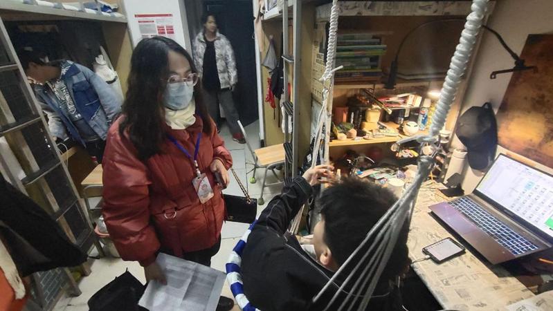 李明玉老师对学生宿舍进行走访