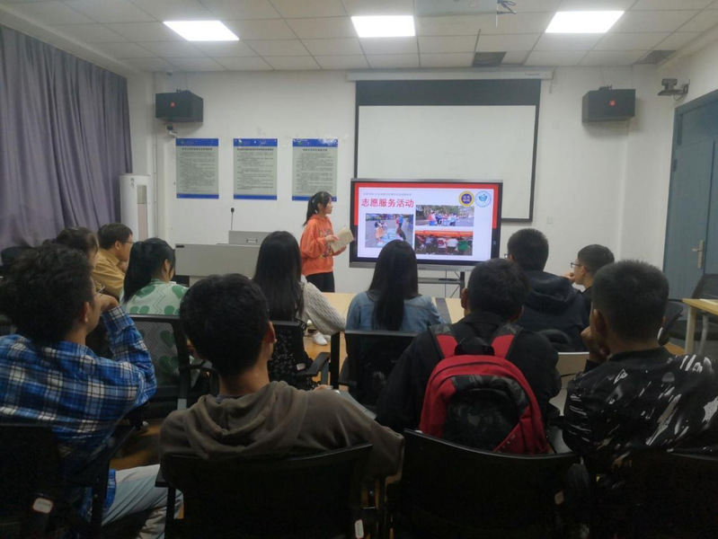 会议开始,全场观看一段关于志愿者的短片,引出本次培训内容。视频结束后,两位主讲人分别进行讲解培训内容。左蔓学姐先以提问的方式引出本次的话题,讲解青年志愿者服务的意义、理念、宗旨。紧接着胡丽萍学姐上台为大家补充做志愿服务活动时的注意事项以及一些小细节。讲解中胡丽萍学姐邀请两名志愿者上台演示如何为同学宣传消防安全知识,纠正志愿者在演示过程中出现的一些细节错误,模拟演示使全体参会志愿者印象深刻。活动尾声,进行提问分享环节,耐心仔细的解答志愿者的提问。最后,全体参会志愿者一起合影留念,至此,此次志愿者培训会顺利结束。