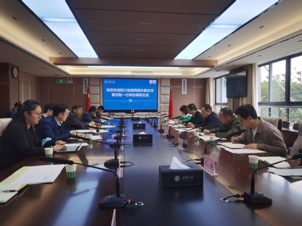 3月29日,四川省委网信办副主任黎召阳一行到学校调研交流,双方在办公楼212会议室举行座谈交流会。