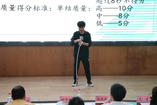 比赛正式开始,每组队伍入场并进行自我介绍,各组参赛选手纷纷表示对本次比赛志在必得。比赛答题共分为四个环节,第一、二轮为必答题环节,选手们稳定发挥,比分相持不下。第三轮为抢答题环节,赛场氛围进入白热化阶段,各队伍竞争激烈,场上比分逐渐拉开,本轮结束时,第五组暂时领先。第四轮为应急实操技能比武,各队伍各自派出一名队员进行技能展示。经过记分员公平公正地统计,根据各组排名得出了比赛结果,一等奖由“上天入地无所不能队”获得,二等奖由“毛毛虫队”获得,三等奖由“汪汪队”获得。最后,到场领导和老师们为获奖队伍颁发荣誉证书并合影留念。至此本次竞赛圆满结束。