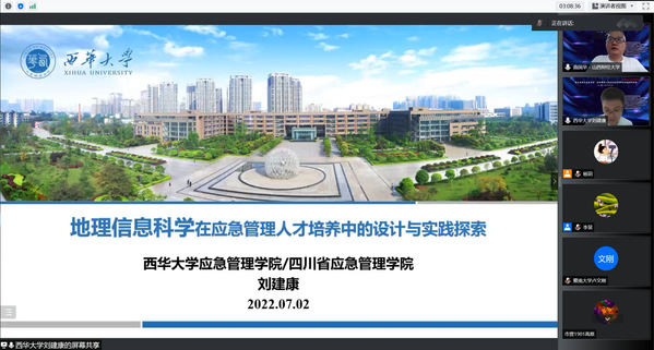 刘建康作了题为《地理信息科学在应急管理人才培养中的设计与实践探索》的报告。首先介绍了西华大学应急管理人才培养方案设置地理信息科学内容的背景,除四川自然灾害多发频发特点外,主要是紧密结合厅校共建的学院发展实际,人才培养突出应用型和实践性。其次介绍了以“应急管理理论基础+自然灾害应急管理技术”为两大核心课程群体系的应急管理专业人才培养方案,阐述了地理信息课程设计内容和培养目标。最后从课时设计、教学内容、实验室和操作软件等方面介绍了地理信息上机课程的具体做法。