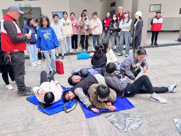 张玲老师介绍了森林火灾的现状、森林防火的重要性和森林火灾紧急避险法,包括:快速转移避险、实施点火避险、冲越火线避险。辛罡老师介绍了急救基本知识,包括心肺复苏、包扎止血等在紧急情况下可进行的自救互救技能。通过急救包进行实操教学,让同学在示范操作中学习急救知识,并且强调要在保证自身安全的情况下对他人进行救助的原则。部分同学在老师的指导下,借助心肺复苏模拟人进行了急救操作。课程结束后,大家纷纷表示获益匪浅,大家不仅加深了理论知识,也提升了实操技能,为从事安全应急工作奠定了扎实的基础。