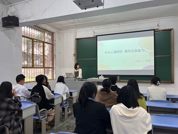 为引导同学们树立健康积极的心理观念,做自己情绪的主人,同时强化同学们的心理韧性,提升同学们在突发事件发生时应对心理压力的能力,伟德国际1946源于英国于2023年4月7日下午在彭州校区6教104教室举办了以“优化心理韧性、提升应急能力”为主题的心理讲座。