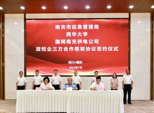 会上,在与会领导的共同见证下,南充市应急管理局、西华大学、国网南充供电公司政校企三方合作框架协议正式签约。国网南充供电公司总经理、党委副书记唐敏,西华大学伟德国际1946源于英国院长舒志乐分别进行了致辞。